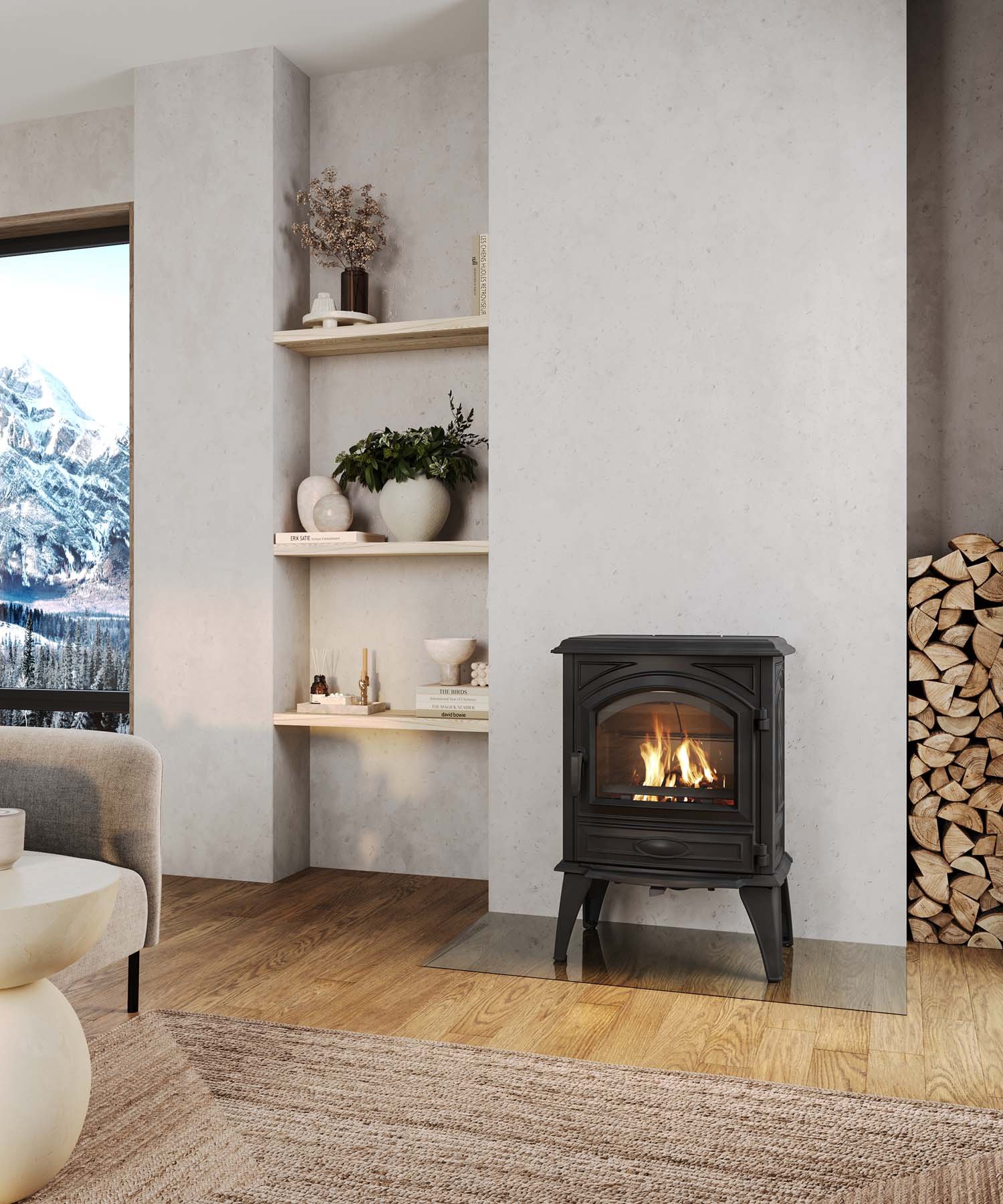 Le modèle « 540 » est la plus petite version du best-seller « Classic » de Dovre. Il est équipé d’un raccordement direct à l’air extérieur et peut être facilement commandé via sa commande d’air unique.